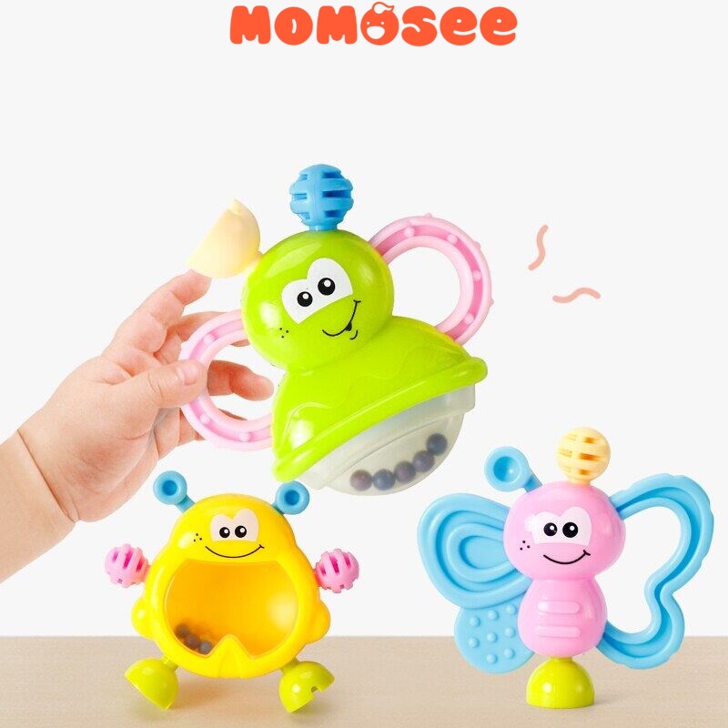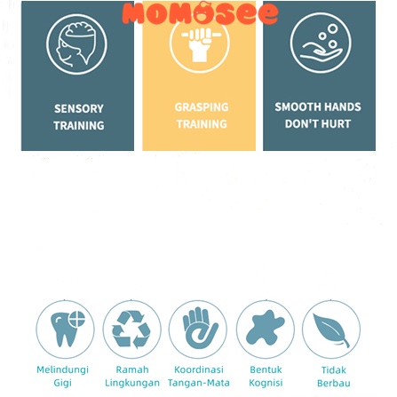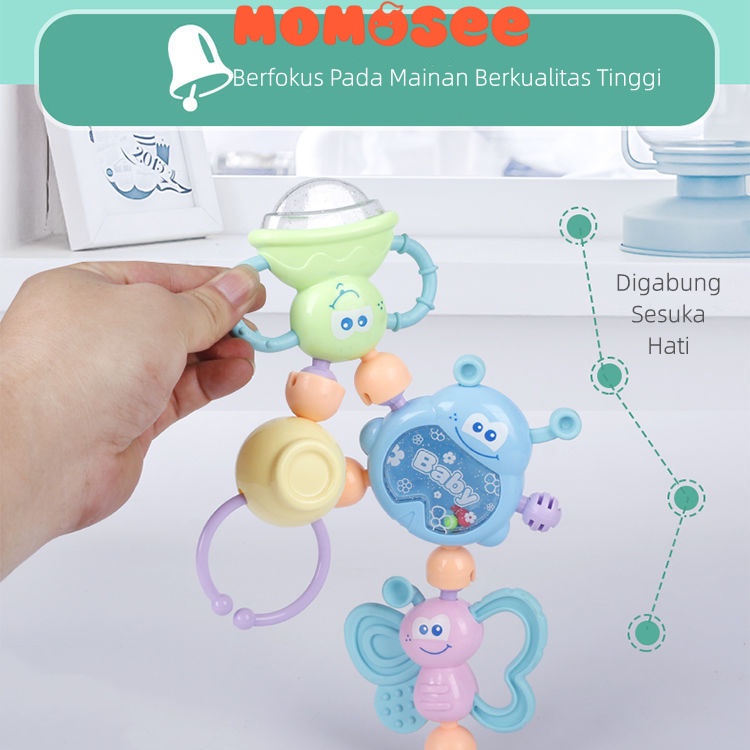 Momosee Baby Teether Rattle Teething Kit Mainan Gigitan Bayi Silikon PP Mainan Bayi BPA Free WJ03