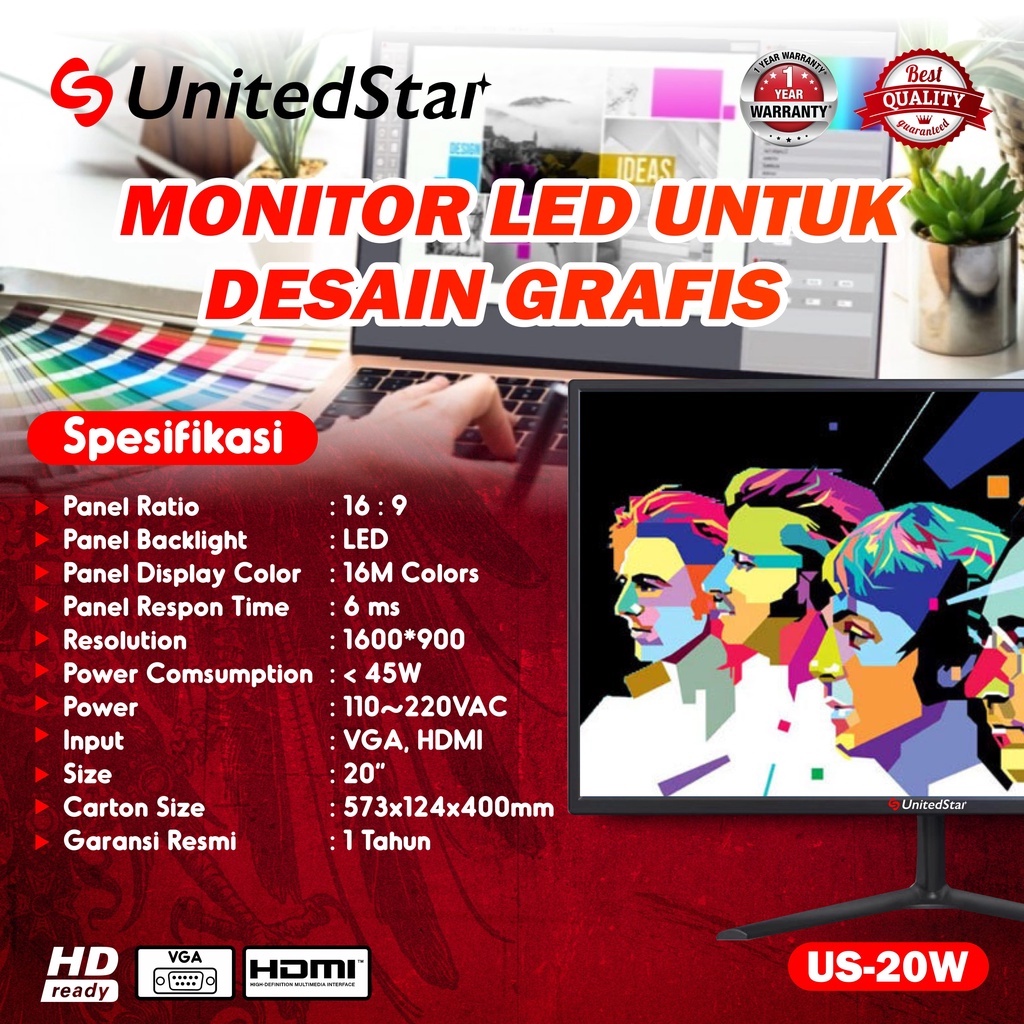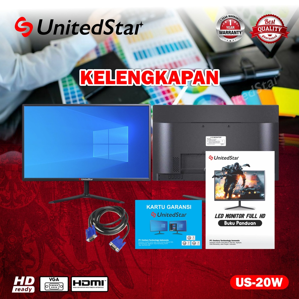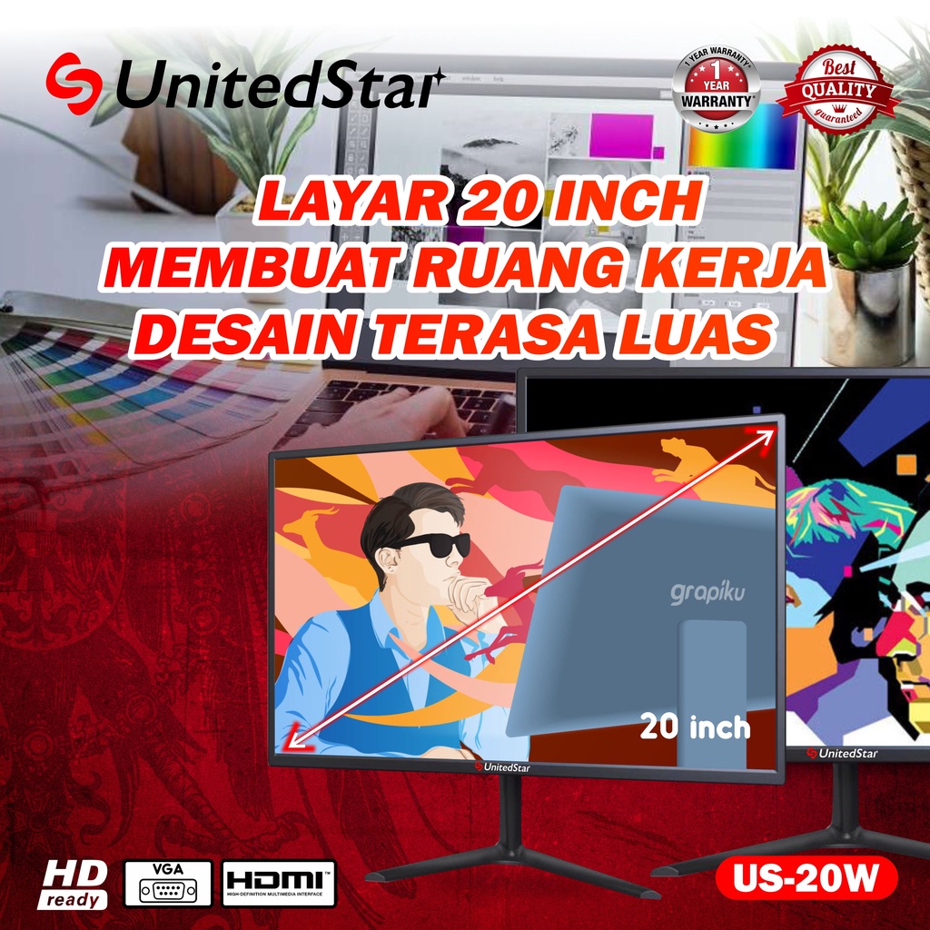 Monitor 20 Inch Murah-UnitedStar Official-Electronics-Monitor 20inch US-20W Garansi Resmi 1 Tahun-Belajar Design dan Editing-Corel-Photoshop-Termurah-Terbaru.