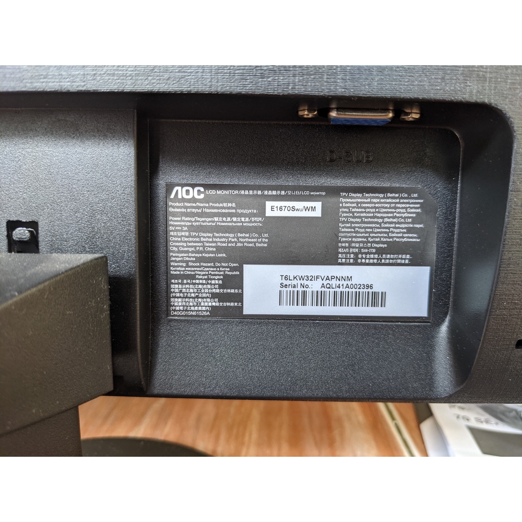 Monitor LCD AOC E1670Swu - Bekas Mulus Seperti Baru