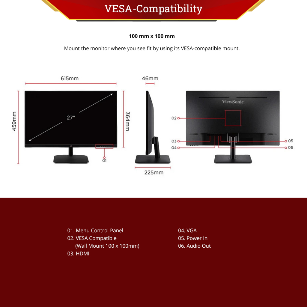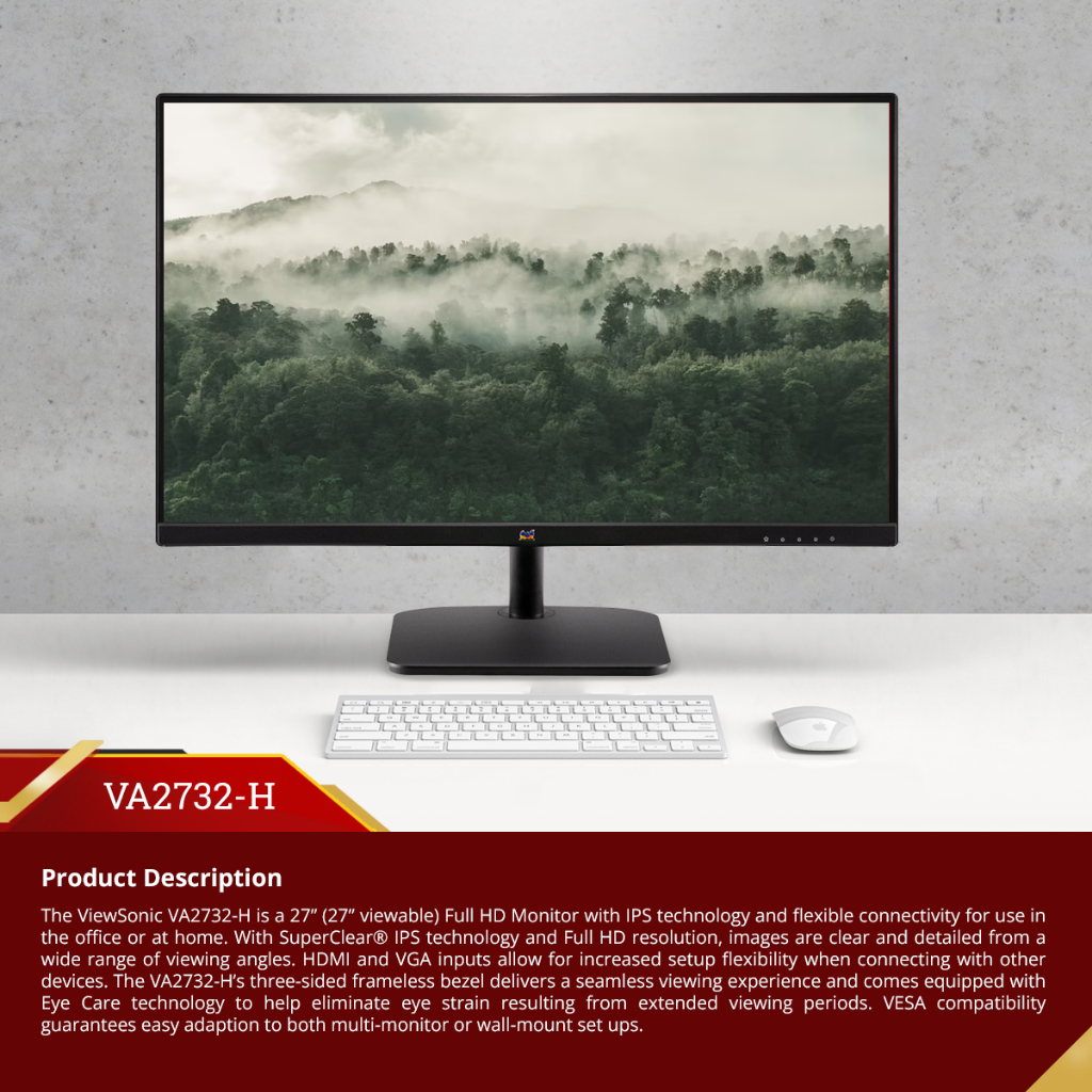 Monitor LED 27" ViewSonic VA2732-H | 75Hz| IPS| 104% sRGB| Frameless
