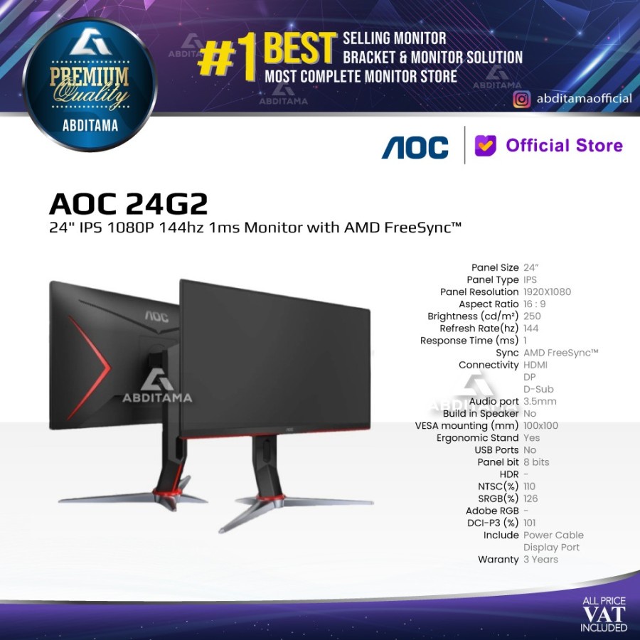 Monitor LED Gaming AOC 24G2 24" IPS 1080P 144hz 1ms VGA HDMI DP