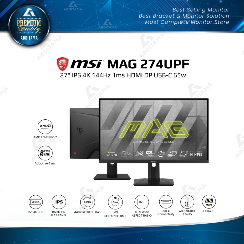 Monitor LED MSI MAG 274UPF 27" IPS 4K 144Hz 1ms HDMI DP USB-C 65w