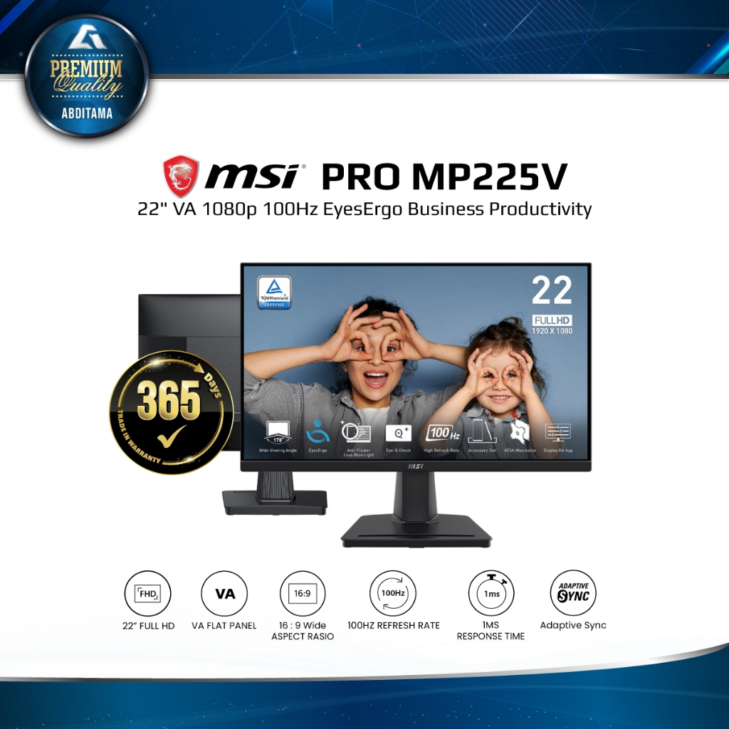 MSI Pro MP225V 22 VA FHD 100Hz 1ms HDMI 1.4x1 VGAx1 VESA 100x100 EyeCare