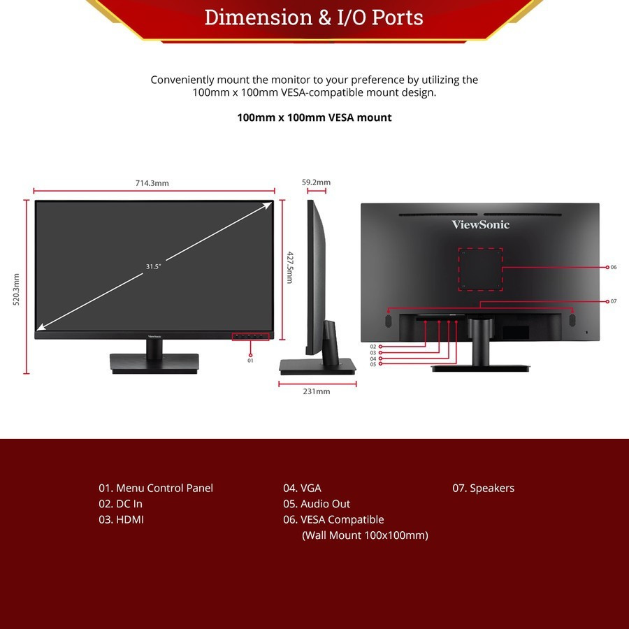 Monitor LED Viewsonic VA3209-MH 32" IPS 1080p 75Hz HDMI VGA VESA Speaker