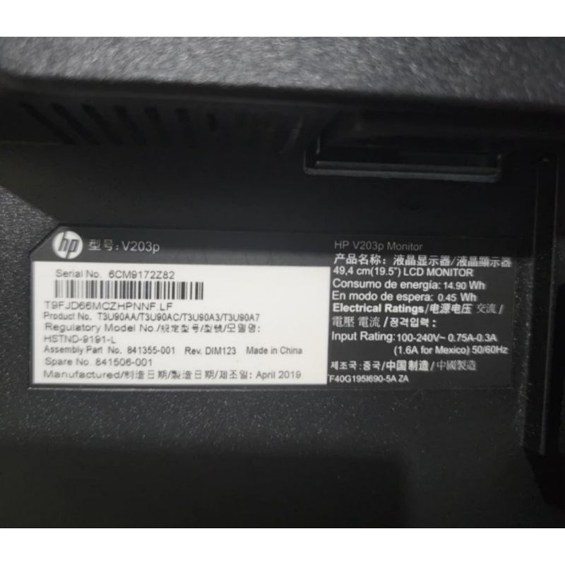 Monitor Led Hp 20 Inch Type V203P Widescreen