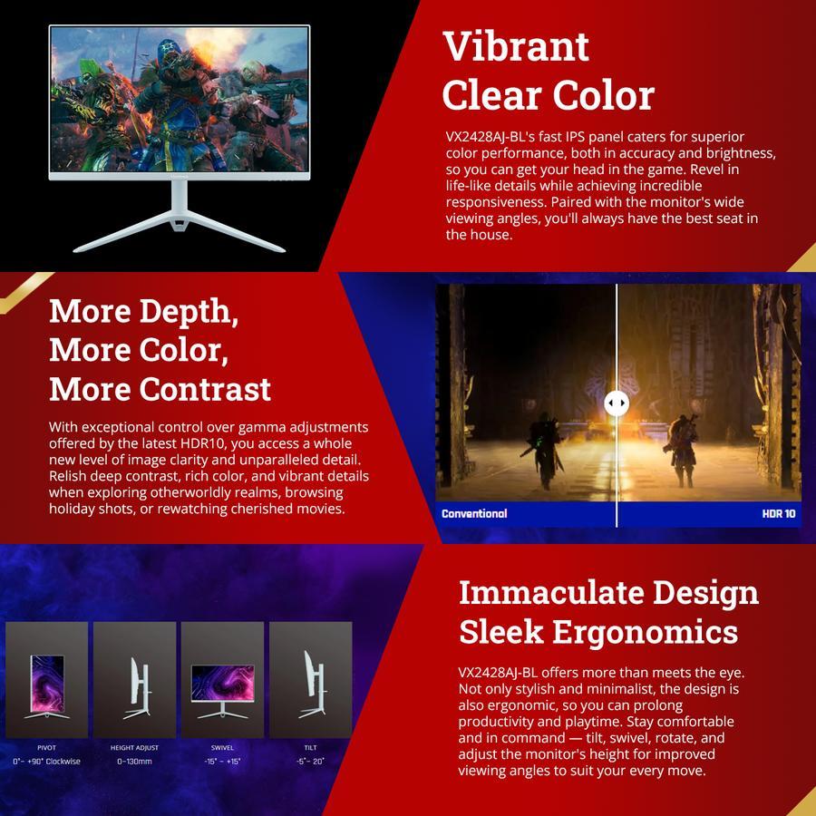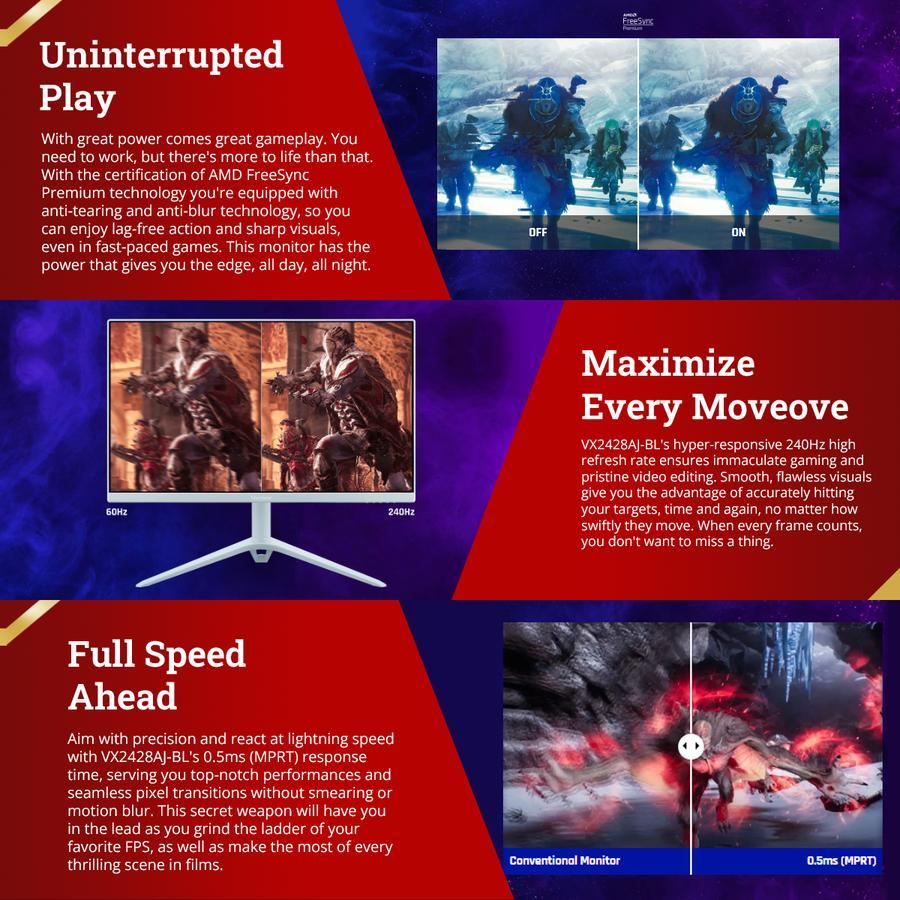 Monitor VX2428AJ-BL 24 Inch 1920x1080 IPS 240Hz Speaker Ergonomics BLUE