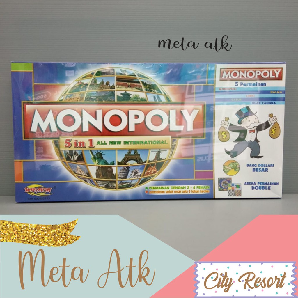 Monopoly 5-in-1 Permainan Papan Monopoli Halma Ular Tangga Ludo Catur