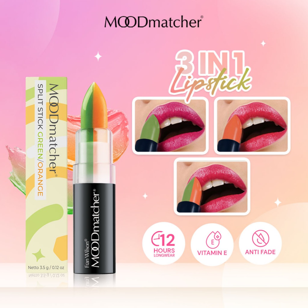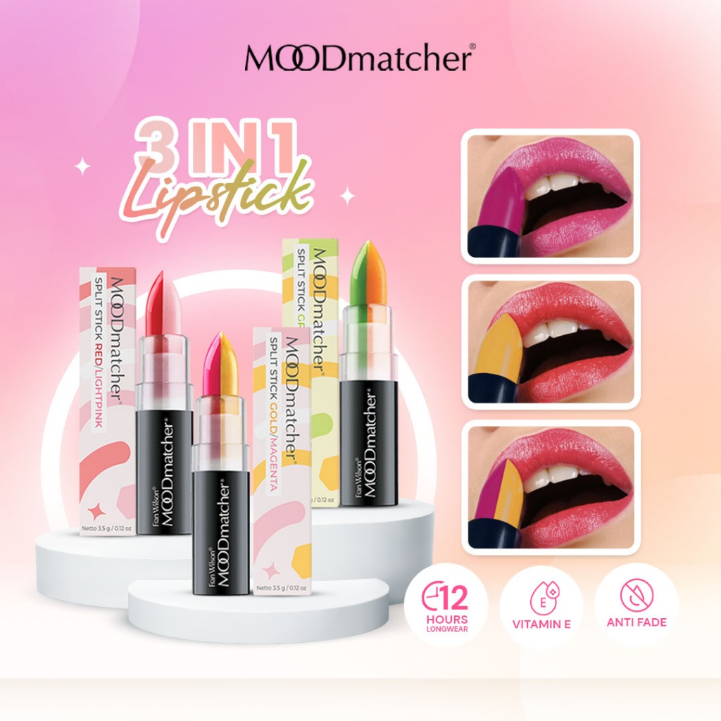 Moodmatcher Split Stick - Lipstik 3in1 color Tahan Lama Maskproof Smudgeproof with Aloe Vera dan Vitamin E
