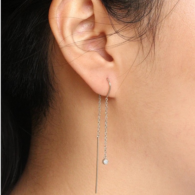 Moonlight Threader Earrings - Anting Panjang Elegan Hias Zirconia Swarovski - LOULOUROSE