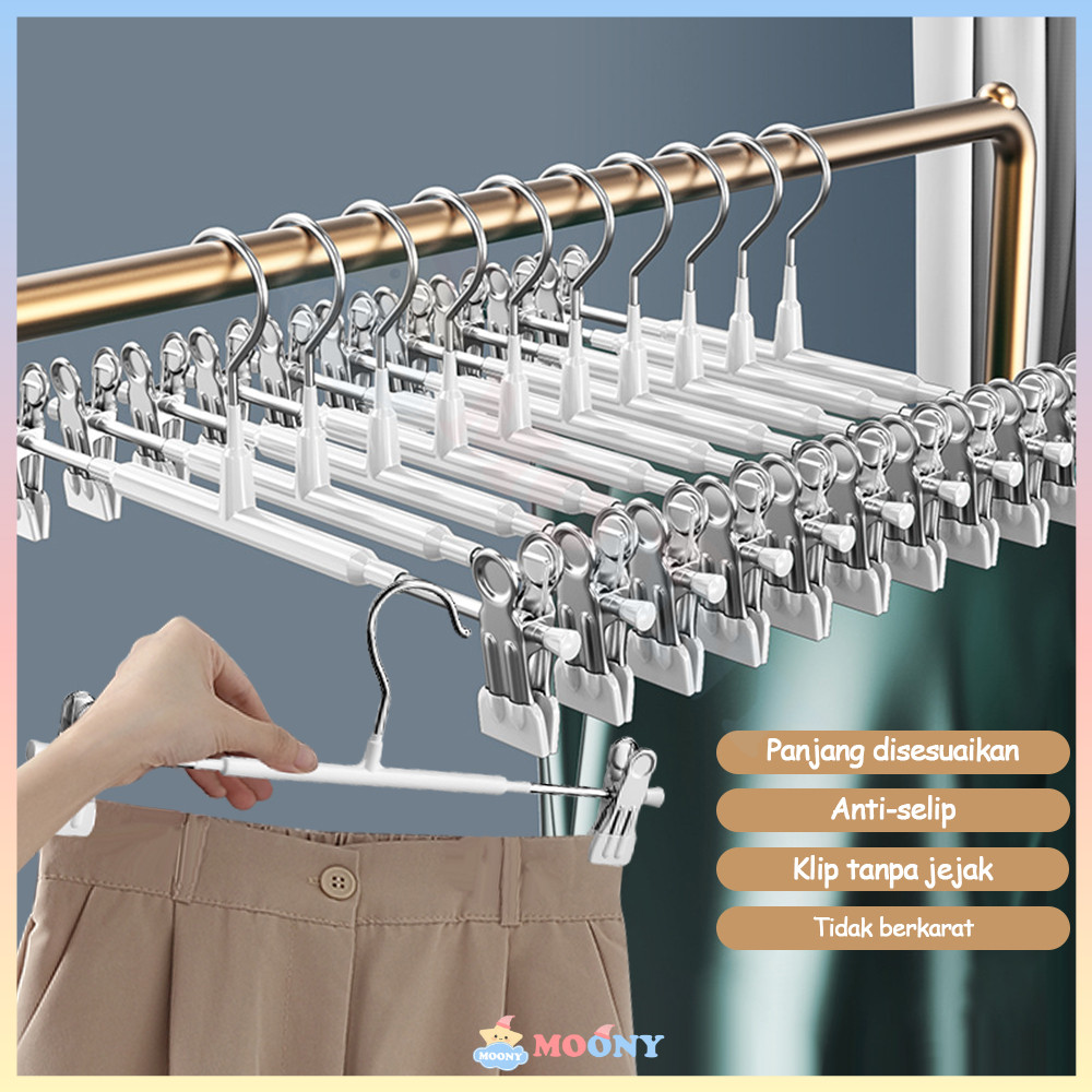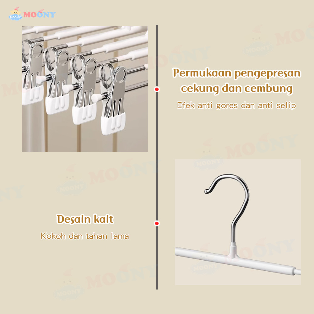 Moony Hanger celana jepit multifungsi Gantungan baju jepit dengan penjepit Hanger jepit besi