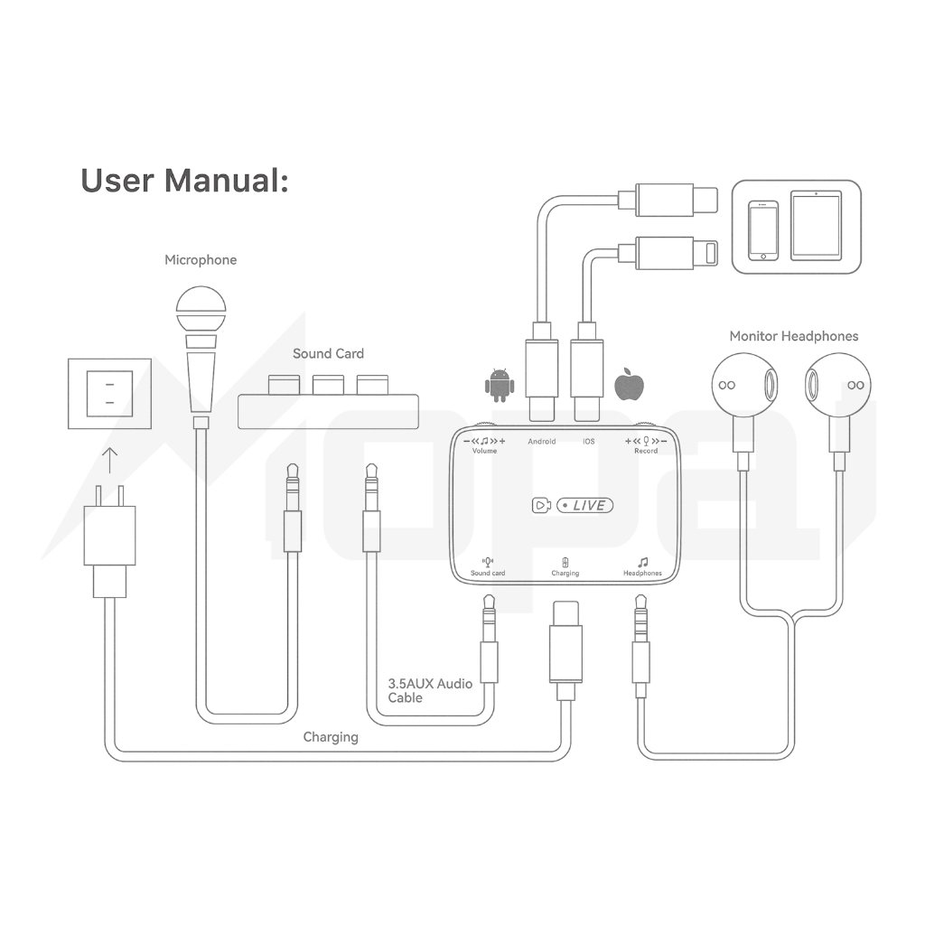 Mopai KT319 Stereo LIVE STREAMING DOCK 2 in 1 Android & iPhone Converter Soundcard KT320
