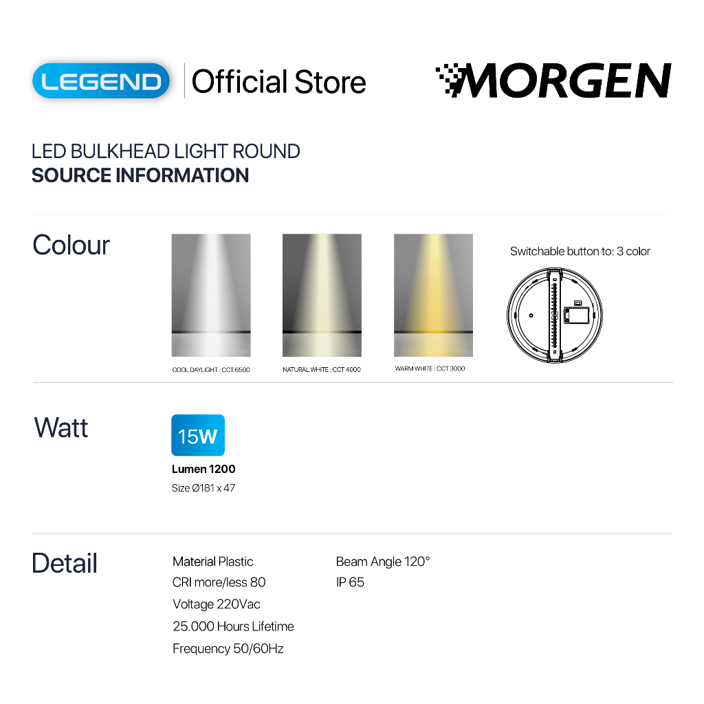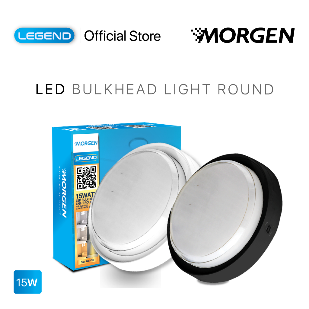 Morgen LED Bulkhead Light Round CCT Switch Legend Series - Lampu Tempel Dinding Bulat Tahan Air 15W Putih / Natural / Kuning