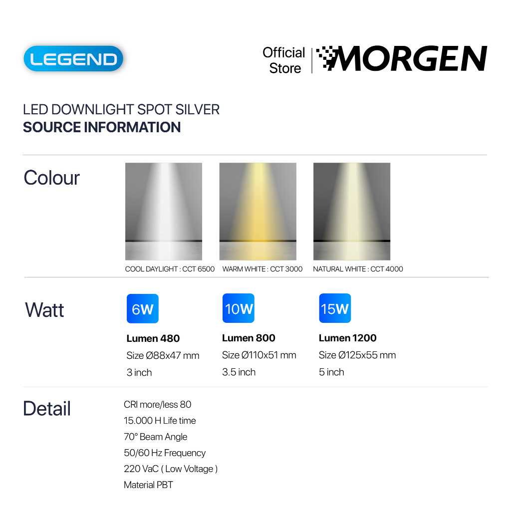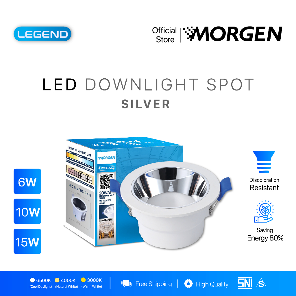 Morgen Lampu LED Downlight Spot Legend Series (Silver) - Lampu Sorot Downlight Putih / Natural / Kuning 6W 10W 15W
