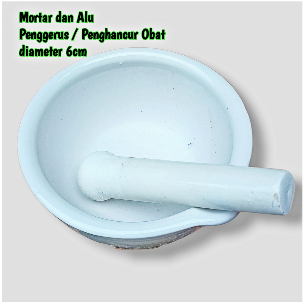 Mortar Mortir Lumpang Pastle Alu Stamper 6 cm | Penumbuk Penggerus Ulekan Obat Puyer Kimia Laboratorium Farmasi Porcelain Porselin Murah