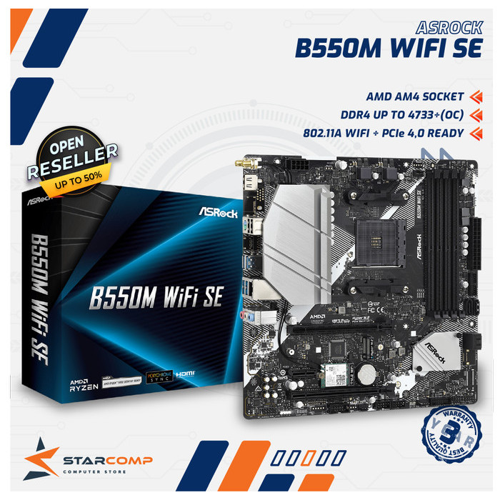 Motherboard ASROCK B550M WIFI SE (AM4, AMD, B550, DDR4, USB3.2, PCIE 4) Mainboard Mobo
