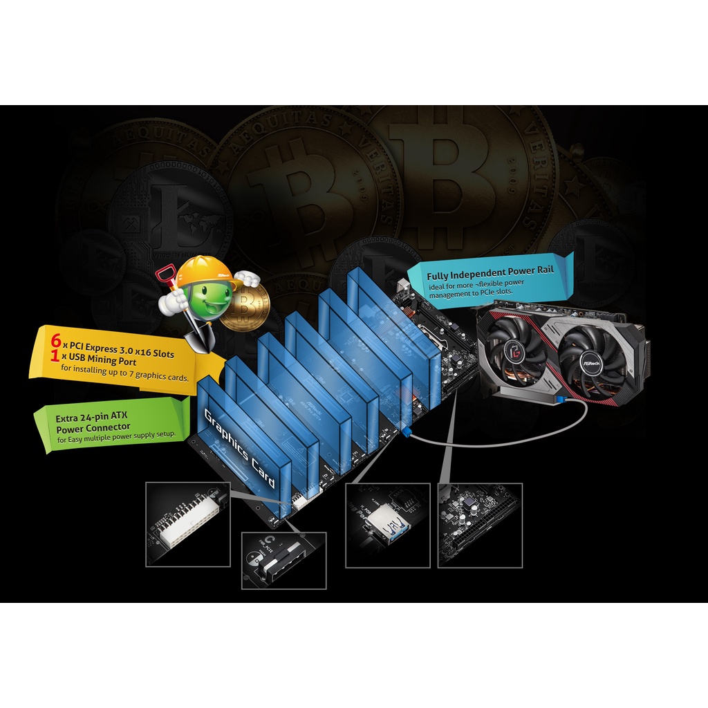 Motherboard ASRock H510 Pro BTC+ Mining 6 Slot PCI Express 3.0 x16 Coin Crypto