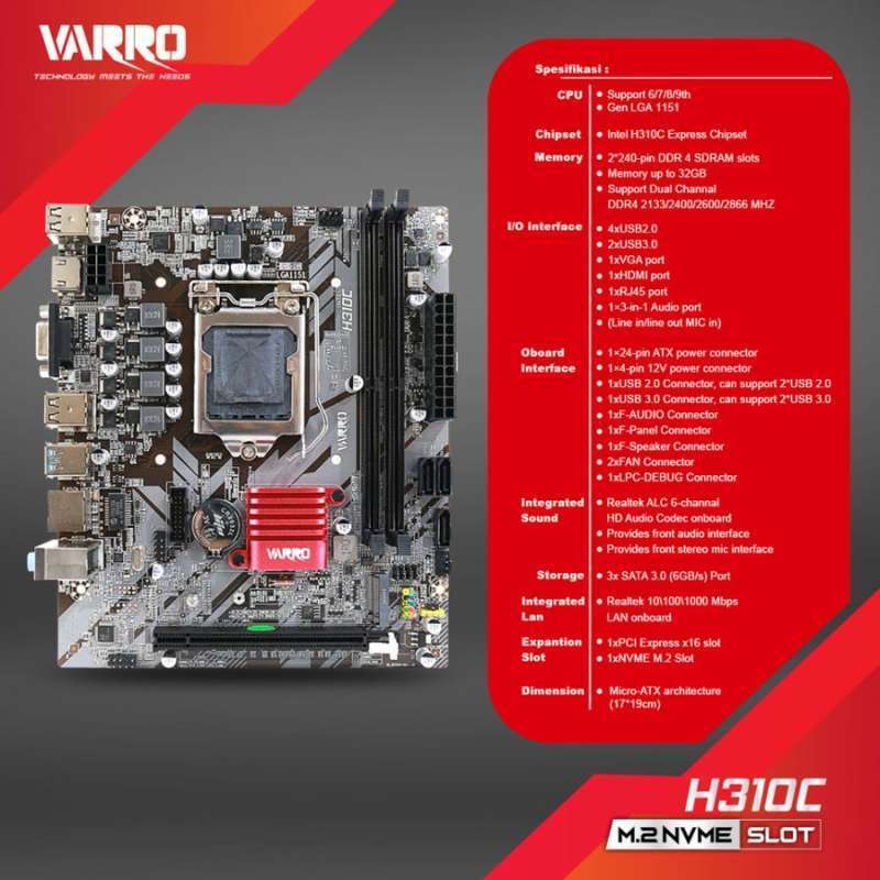 Motherboard Mobo Mainboard Varro H310 M.2 NVMe & M.2 SATA Socket Intel LGA 1151 DDR4 Gen 6/7/8/9