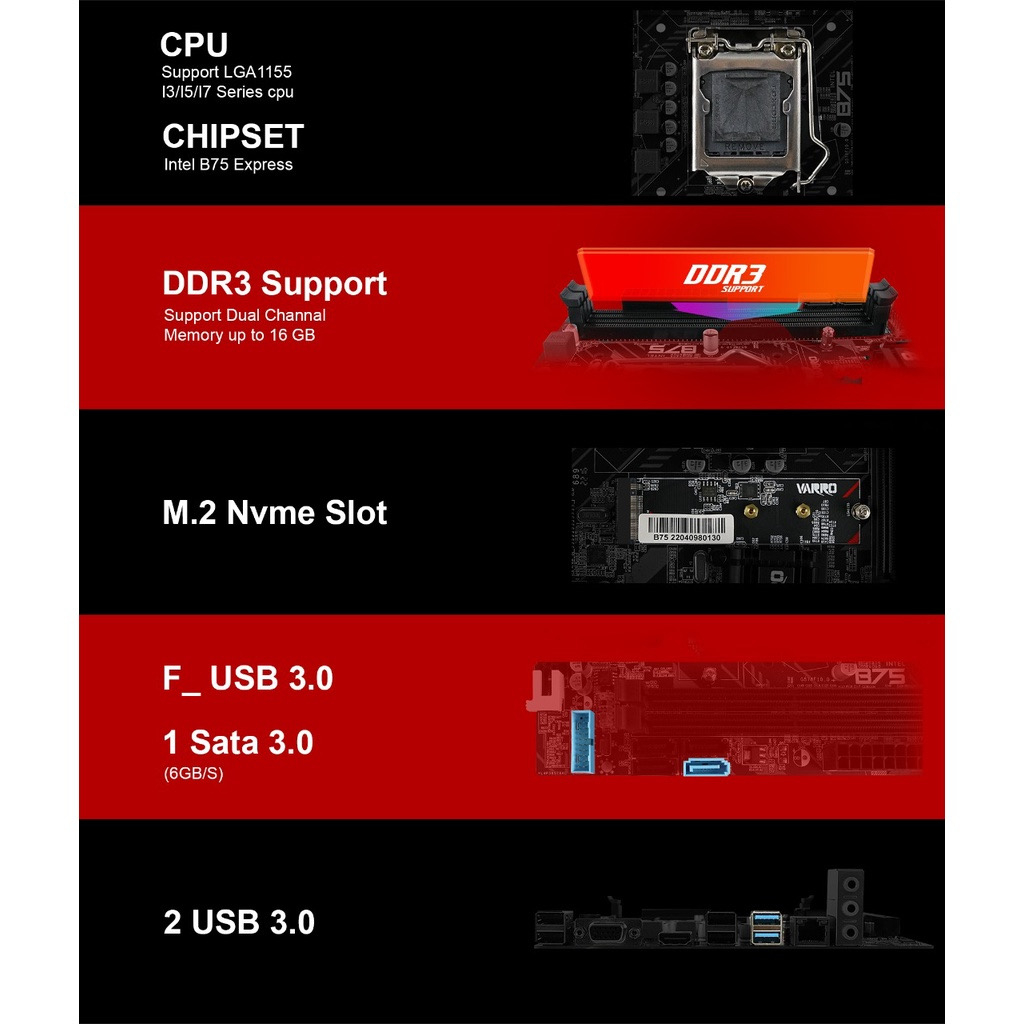 Motherboard Murah Meriah H61+ B75 VARRO Mainboard Varro H61 LGA 1155 DDR3 MOBO Intel 1155 H61 Plus USB 3.0 M2 NVME Slot