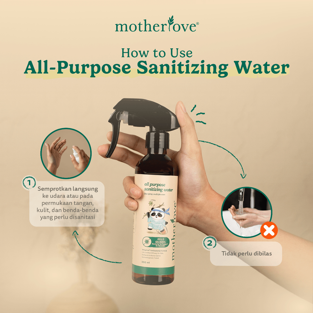 Motherlove Sanitizing Water 200ml - Sanitasi Aman Untuk Kulit, Benda, & Udara - Sanitizer Bayi Food Contact Safe