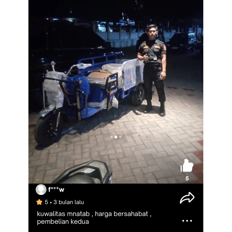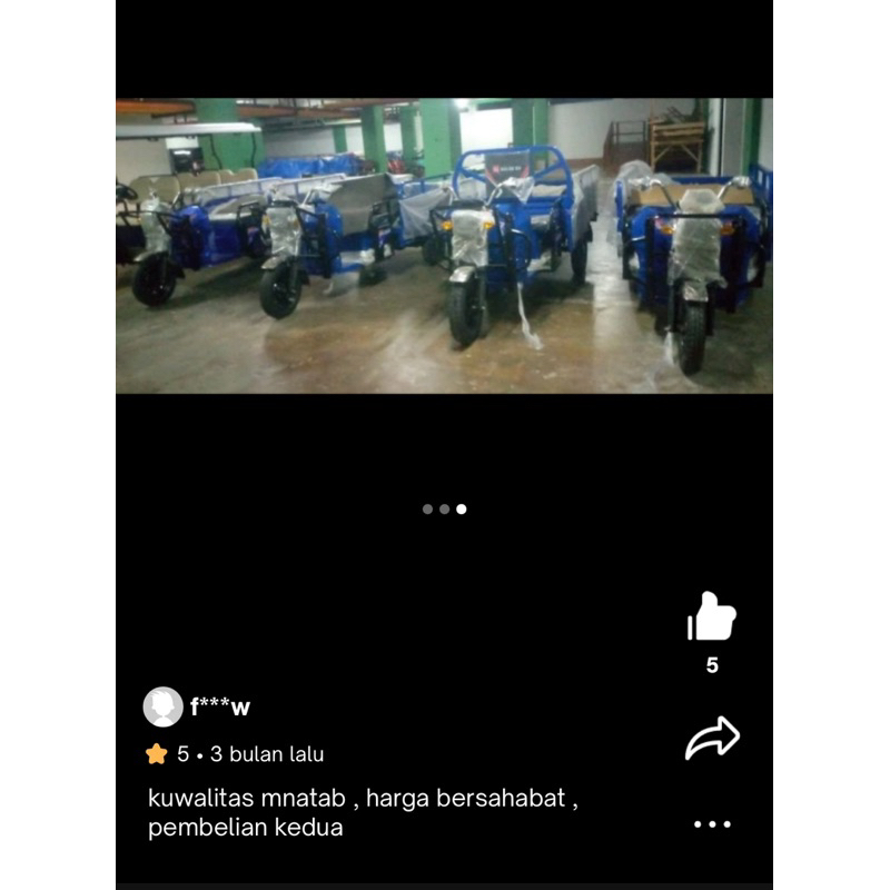 Motor Bak Listrik Solos roda 3 L-h90 pick up mobil bawa galon gas barang pikap pekap bisa mundur ada atap