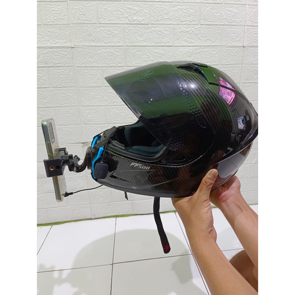 Motovlog Helmet Mounting HP Chin Mount Helm Bike Half Face FullFace Vlog Dengan Handphone Dan Action Camera
