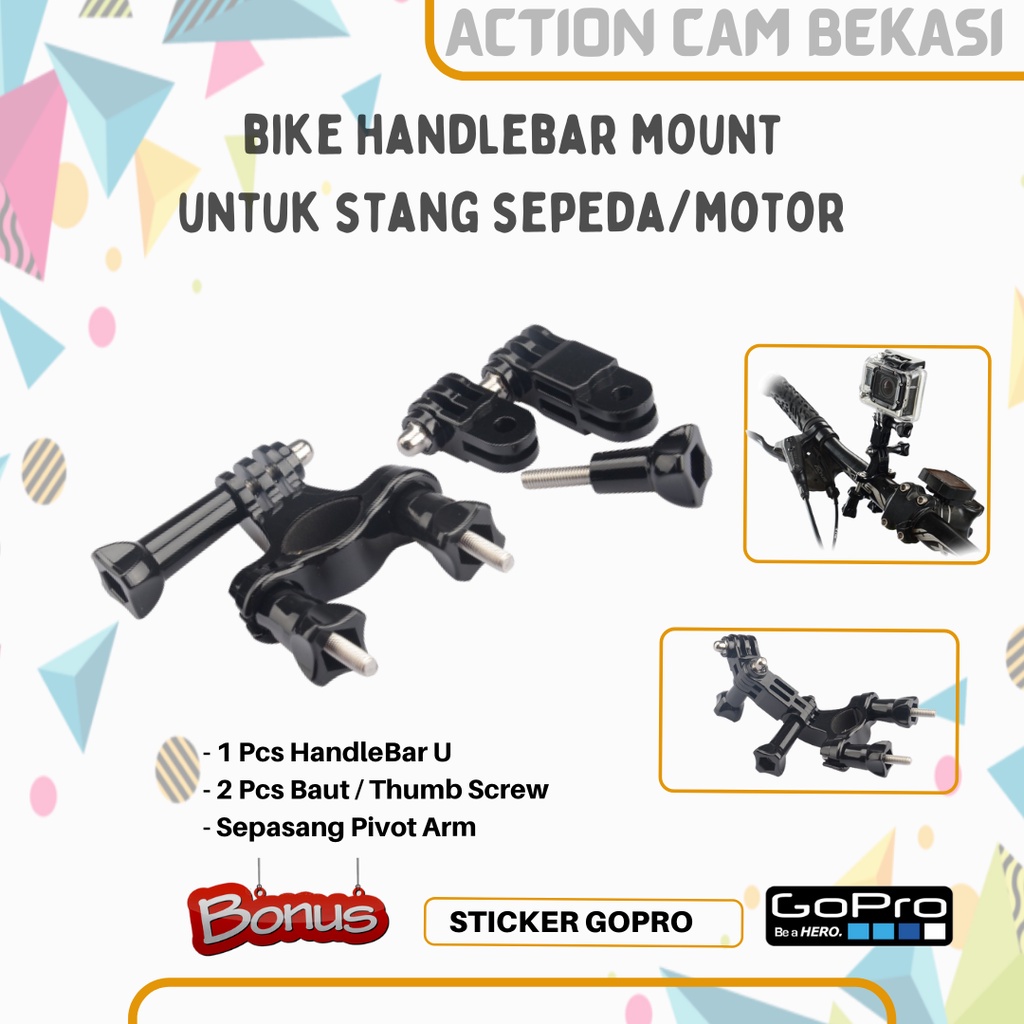 Mounting Stang Sepeda / Bike Handlebar Clamp Bicycle 3 Way Adjustable Pivot Arm For Gopro Xiaomi Yi Bpro Brica