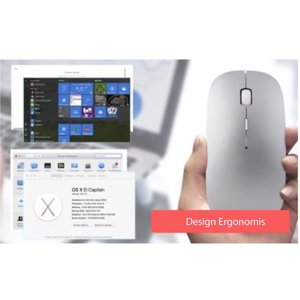 Mouse Bluetooth 5.2 Support Mac Windows Android Tanpa Baterai External koneksi Bluetooth Tanpa Suara 2 in 1 koneksi ( bluetooth dan wireless) Bisa di Charge Tanpa Dongle