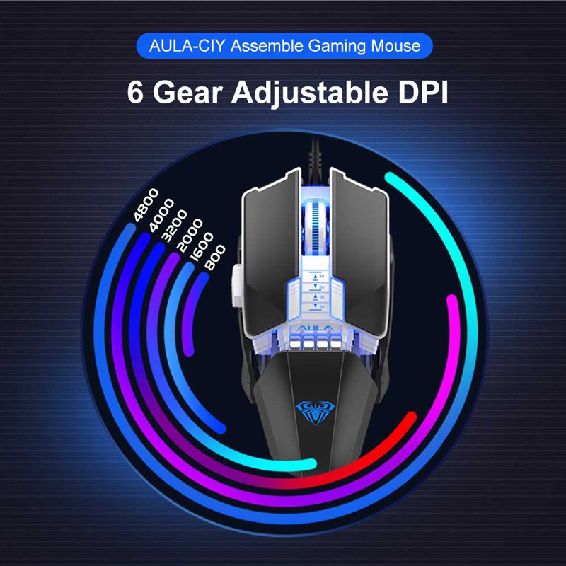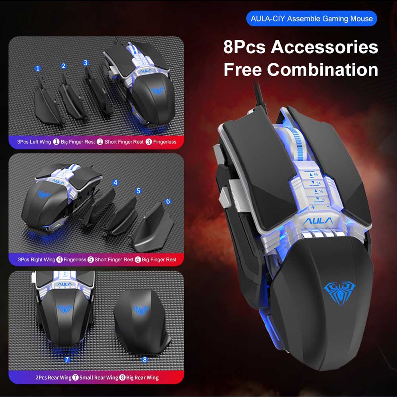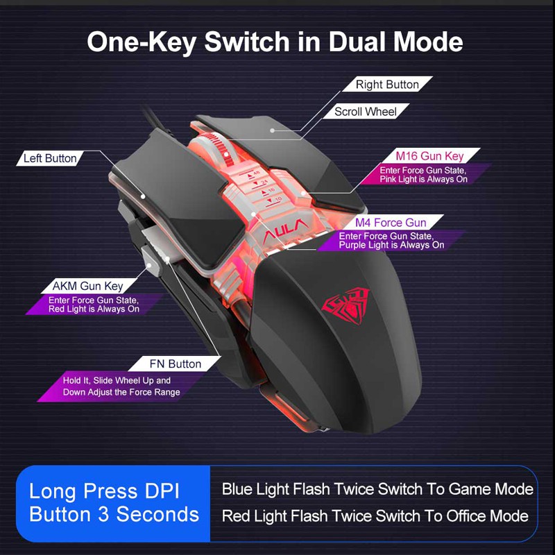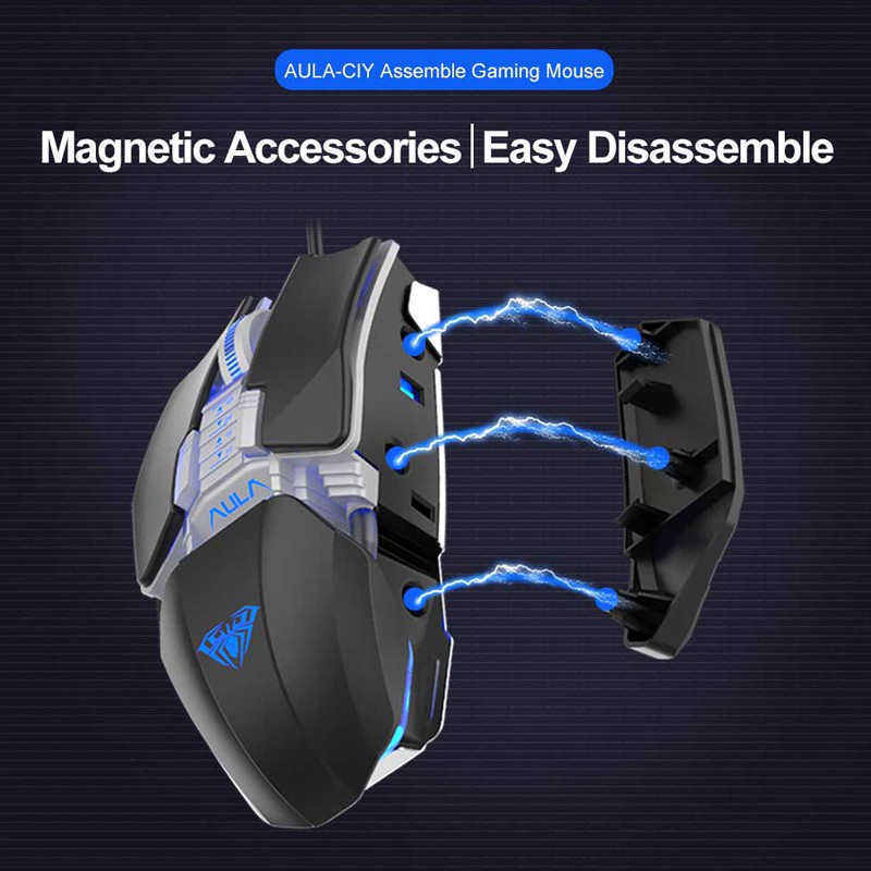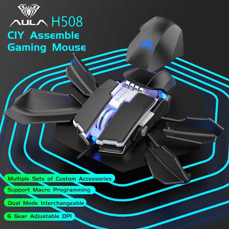 Mouse Gaming AULA H-508 Magnetic - Macro Programming - Dual Mode Interchangeable -6400DPI-7Buttons