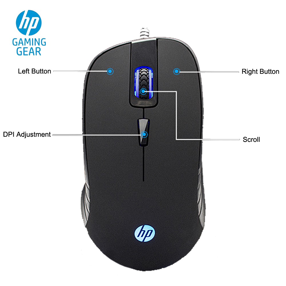Mouse Gaming HP G100 - 2000DPI Blue LED USB Wired