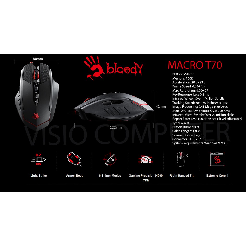 Mouse Gaming Macro T70 Bloody Optic Micro Switch