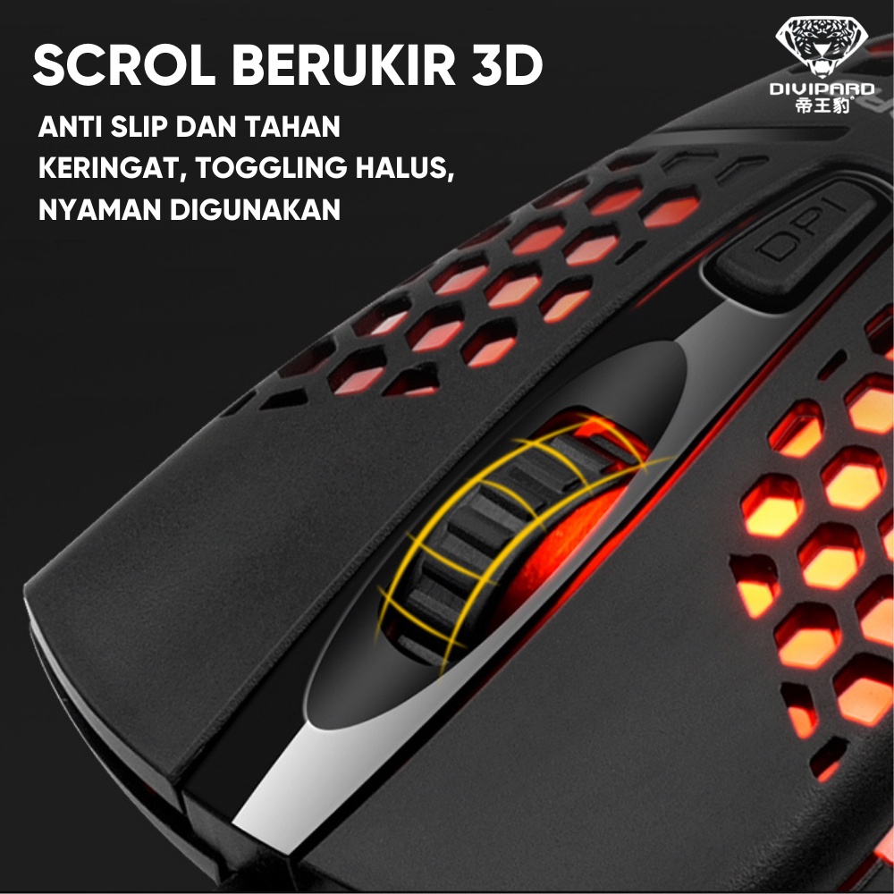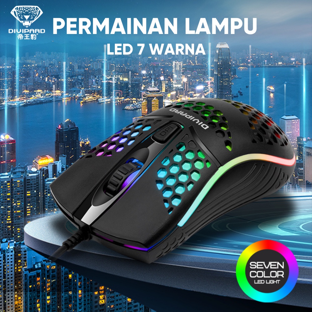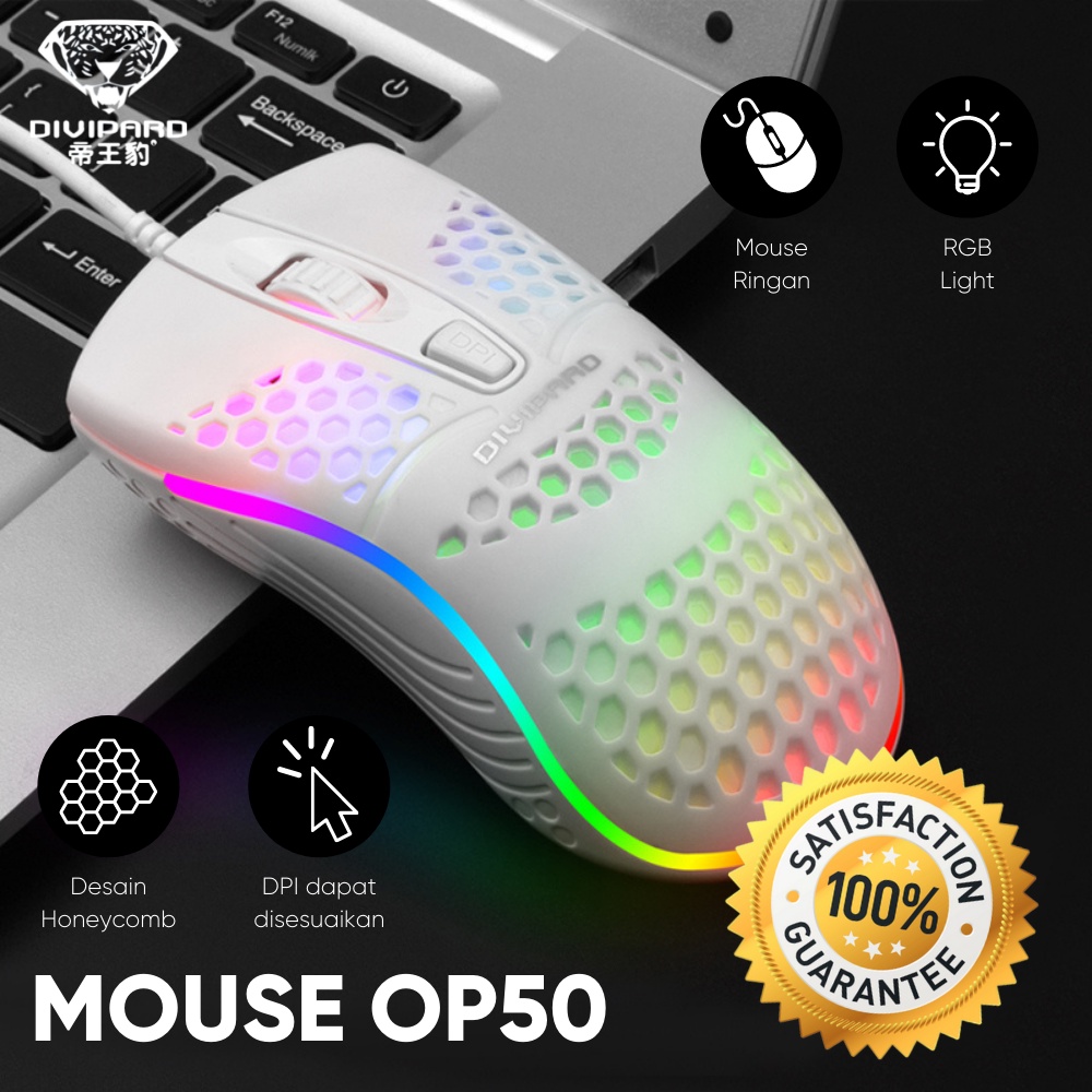 Mouse Gaming Model Honey Comb Divipard OP-50 7 LED RGB 7200DPI
