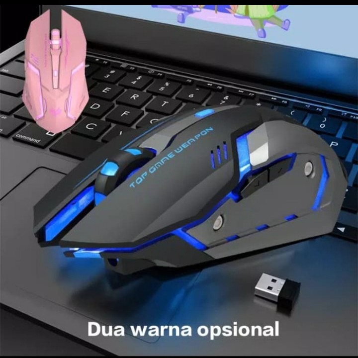 Mouse Gaming Mouse Gamer Cewek Wireless Bluetooth Rechargeable Usb 2.4Ghz Pink Lucu Led
