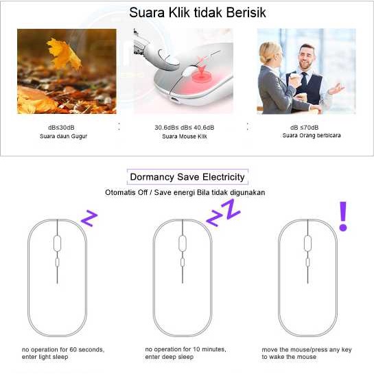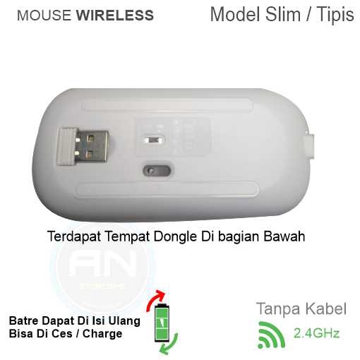Mouse Laptop / Komputer Wireless / Bluetooth Slim Batre Dapat Di Isi ulang
