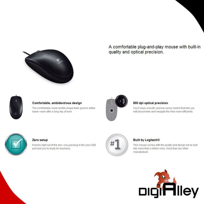 Mouse Logitech B100 100% Original Optical Optik Kabel Cable USB
