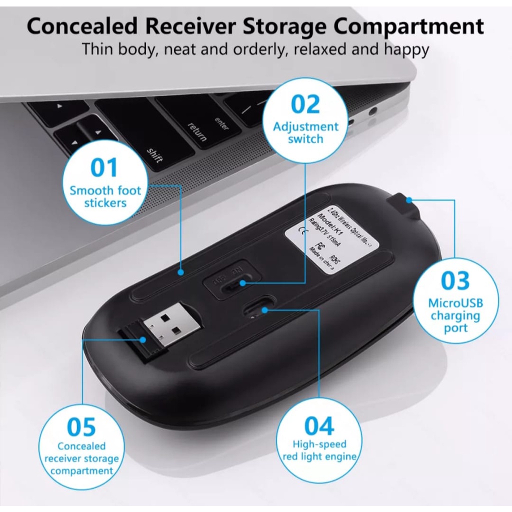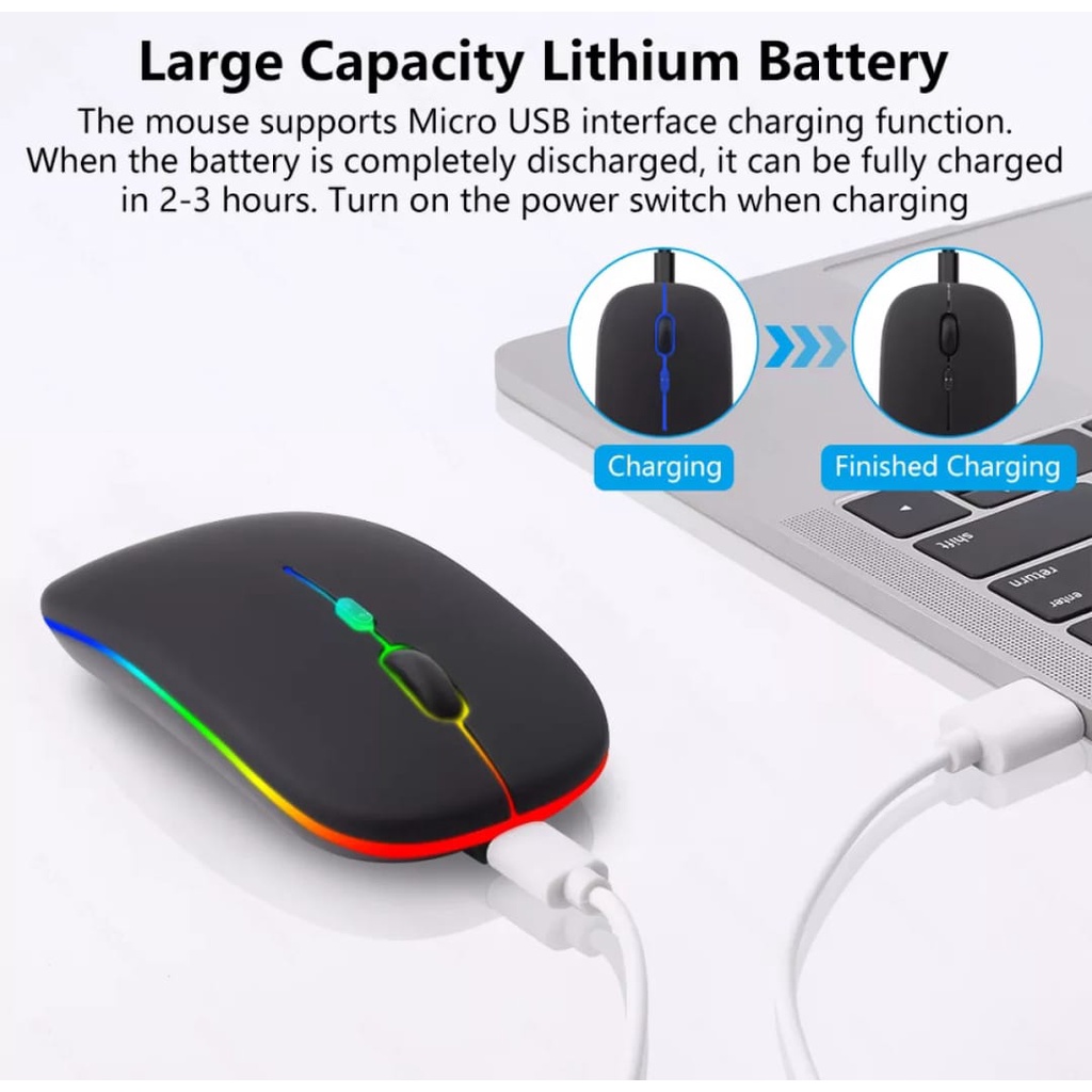 Mouse Nirkabel 2.4Ghz Ergonomis, Mouse Gaming Lampu Latar LED Senyap Komputer Nirkabel Isi Ulang Daya Bluetooth RGB untuk Laptop PC
