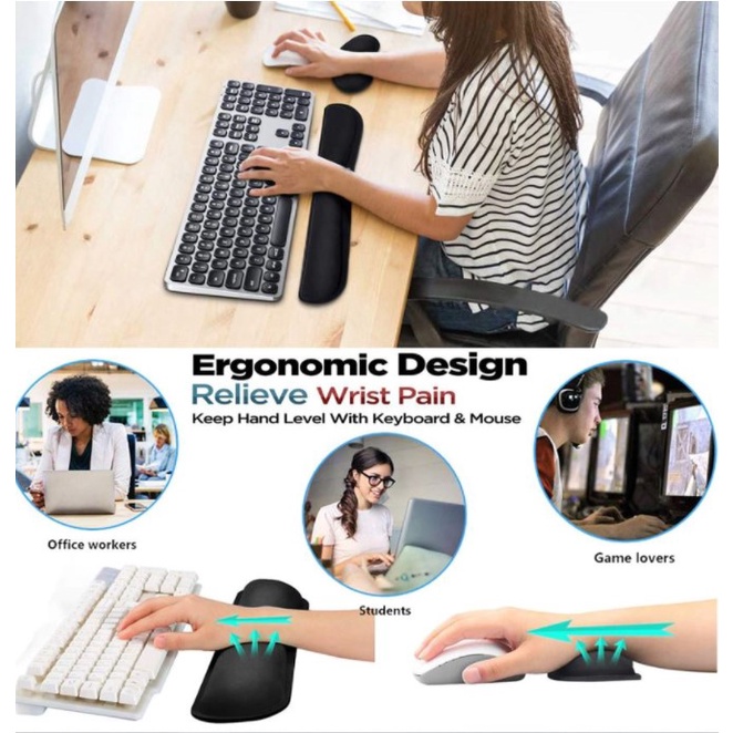 Mouse Pad GEL Bantalan Penyangga Pergelangan Tangan Keyboard Gaming Pc Mouse Gaming Pad Alas Tangan Desktop Anti Slip Black Gel Wrist Rest Support Comfort Pad for PC Computer Gaming Keyboard Raised Platform Hands for Home Office
