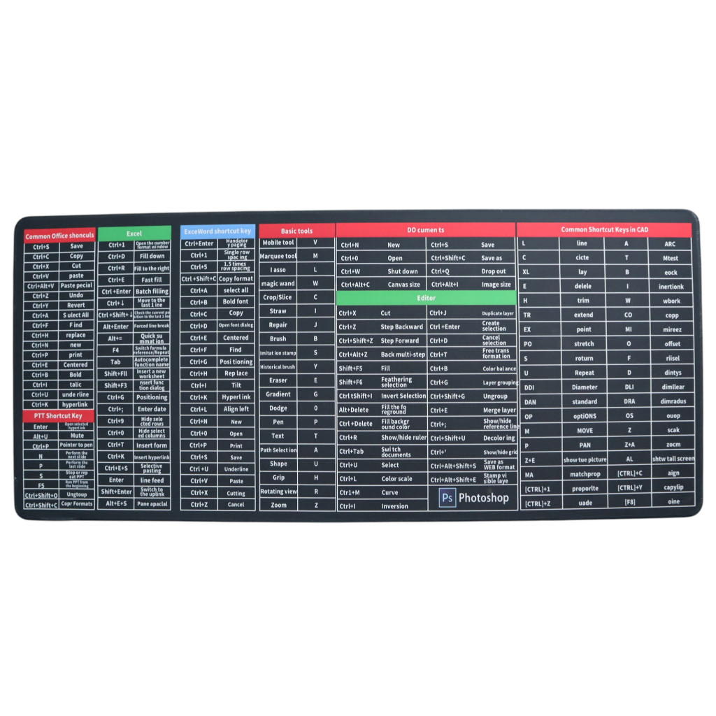 Mouse Pad Plus Rumus Excel Word PPT Mousey Office Desk Mat Motif Keyboard Shortcuts Anti Slip
