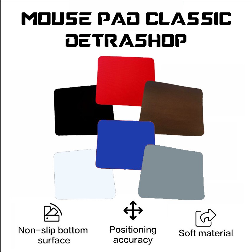 Mouse Pad Polos Hitam, Merah, Coklat, Abu, Biru, Putih 22cm X 18cm - Anti Slip, Soft, Lentur - Murah