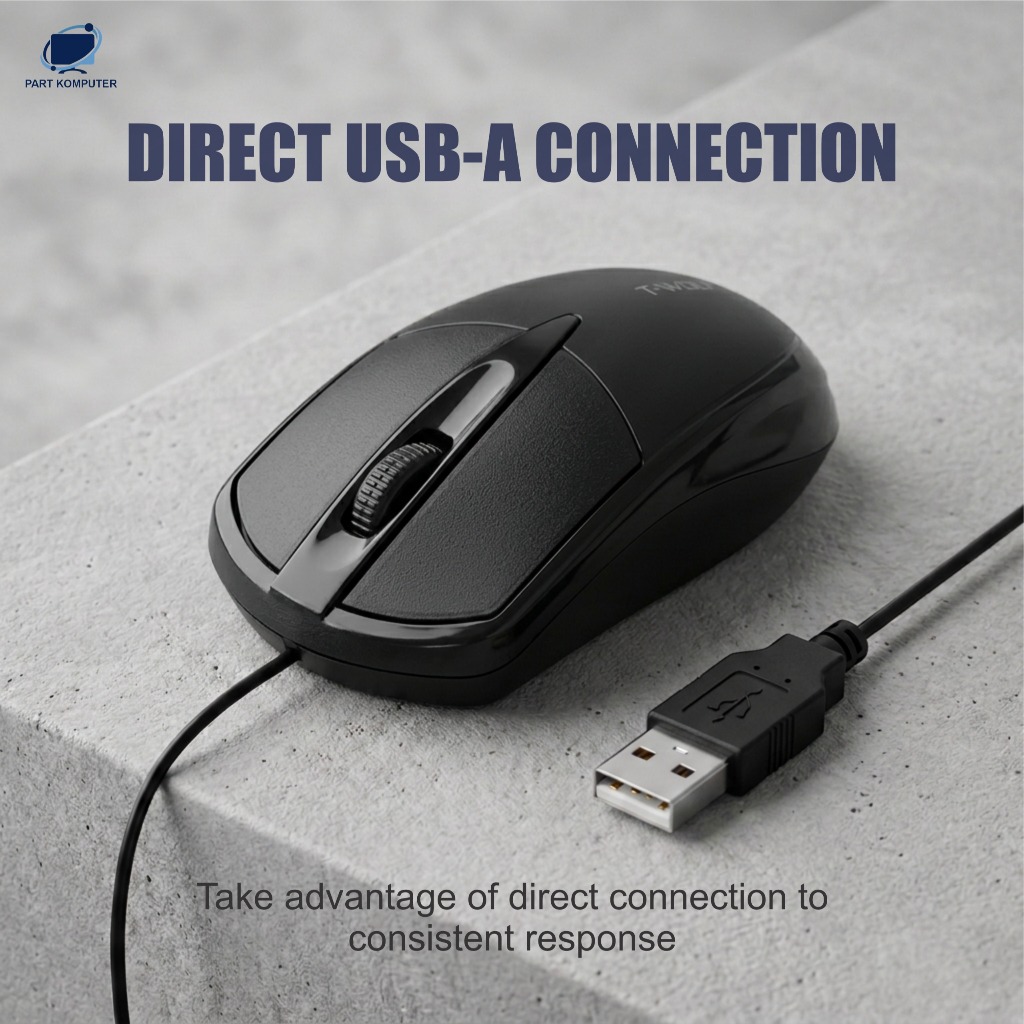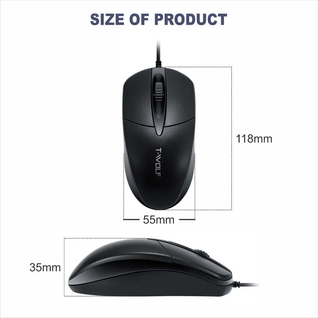 Mouse T-WOLF V13 USB Wired Hitam Optical Kabel Nyaman untuk Kerja Belajar di Laptop/PC