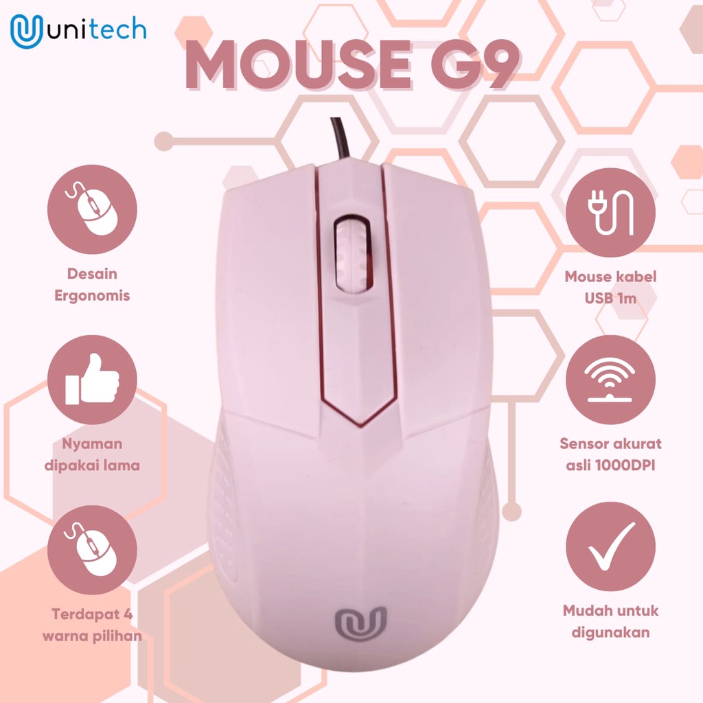 Mouse Unitech G9 Optical USB Wired Mouse Kabel 1000DPI