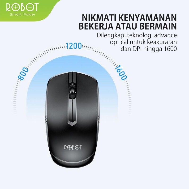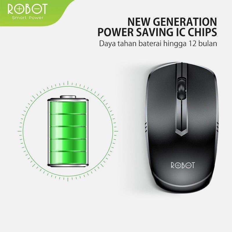 Mouse Wereless 2.4GHz Robot M02 Receiver USB Original Batre 1x AA Daya Tahan