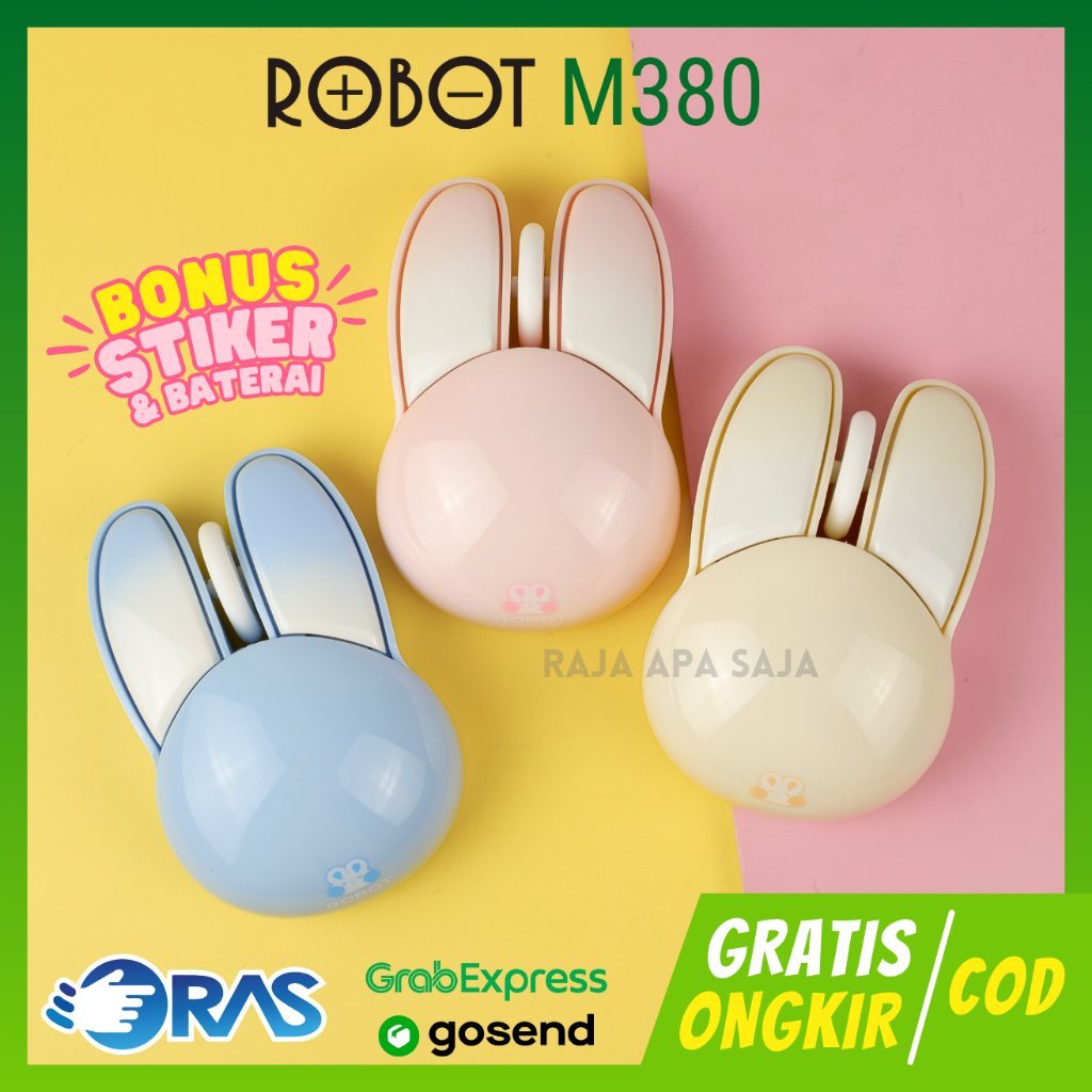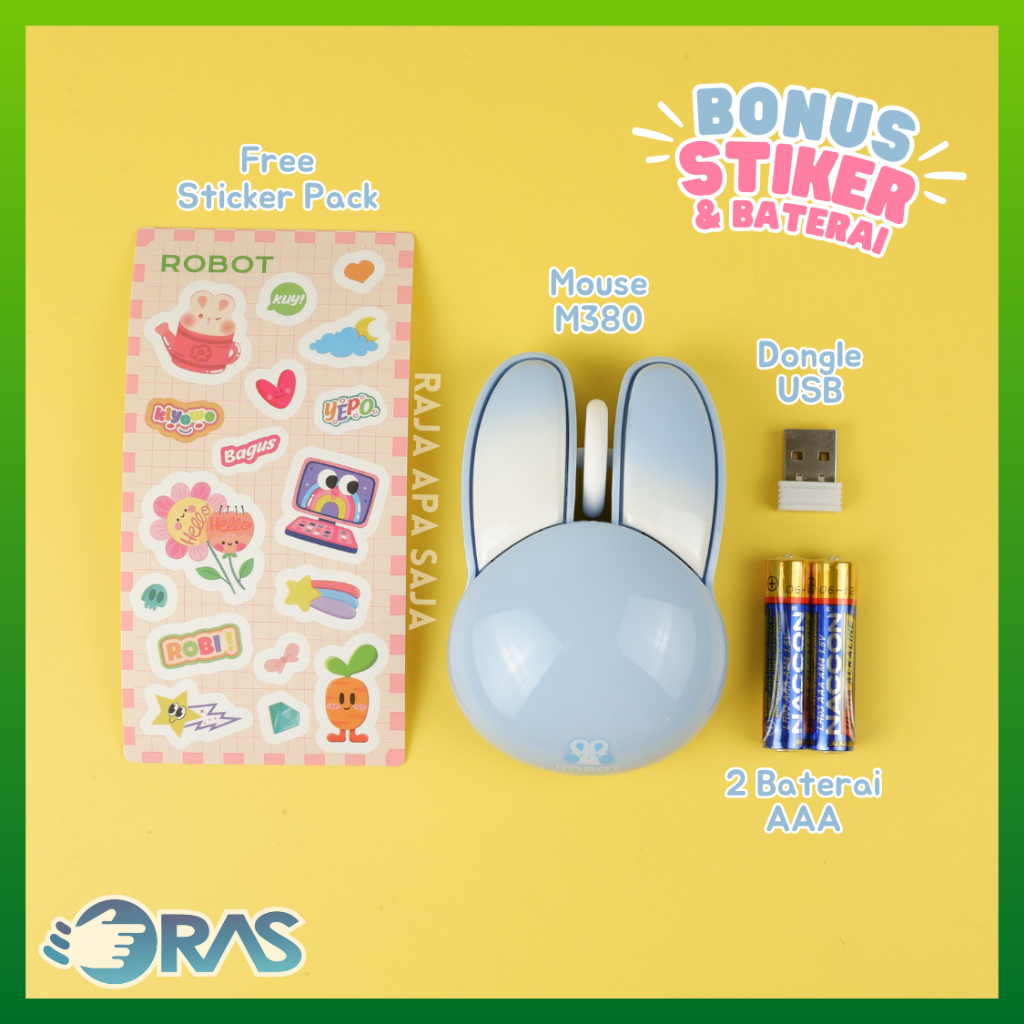 Mouse Wireless Karakter Kelinci Lucu Untuk Laptop PC Komputer Tab Bluetooth Office Kantor Robot M380