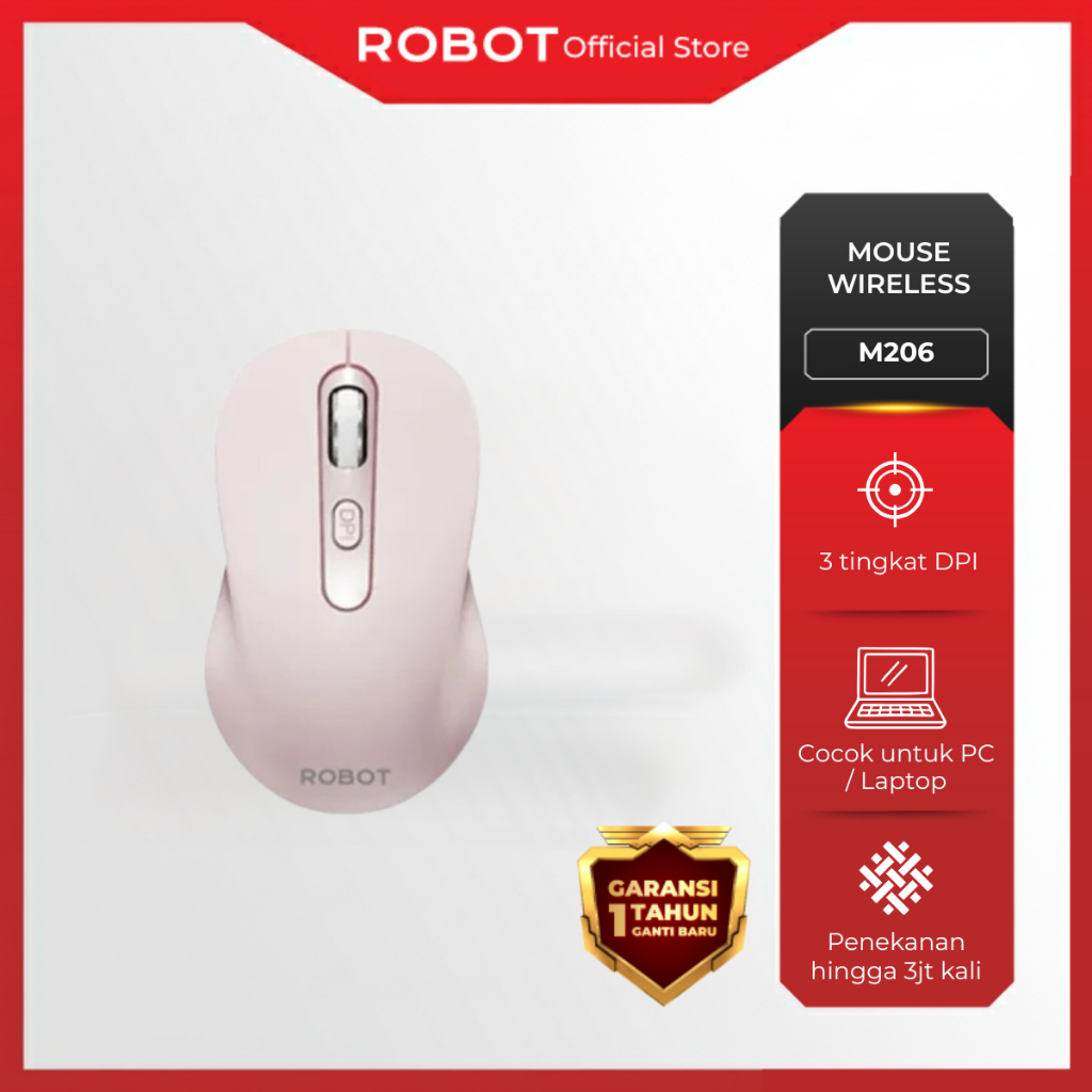 ROBOT M206 Mouse Wireless 2.4GHz 1600 DPI Optical Mouse Tanpa Kabel Laptop / PC Silent Click Hemat Baterai Kursor Stabil Portable Mouse Komputer Office Mouse Murah Best Seller
