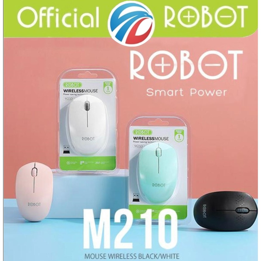 Mouse Wireless ROBOT M210 2.4GHz Optical 1600DPI dengan Receiver USB untuk PC Laptop Original Dpi