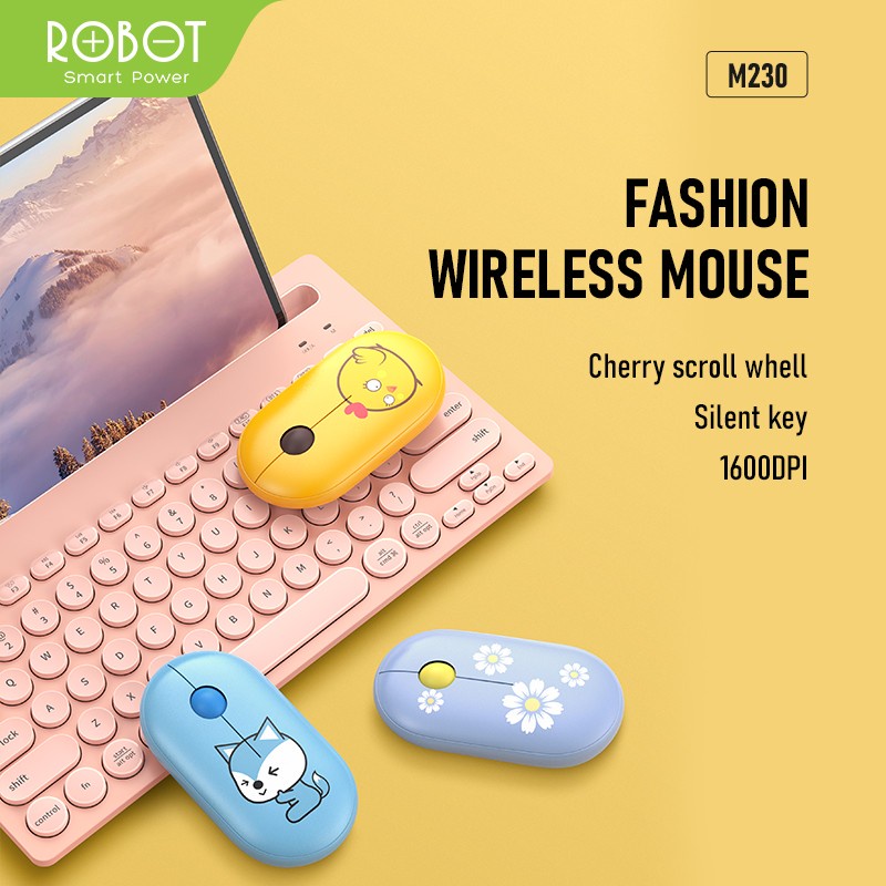 Mouse Wireless ROBOT M230 Stylish 2.4GHz Silent 1600DPI Receiver USB