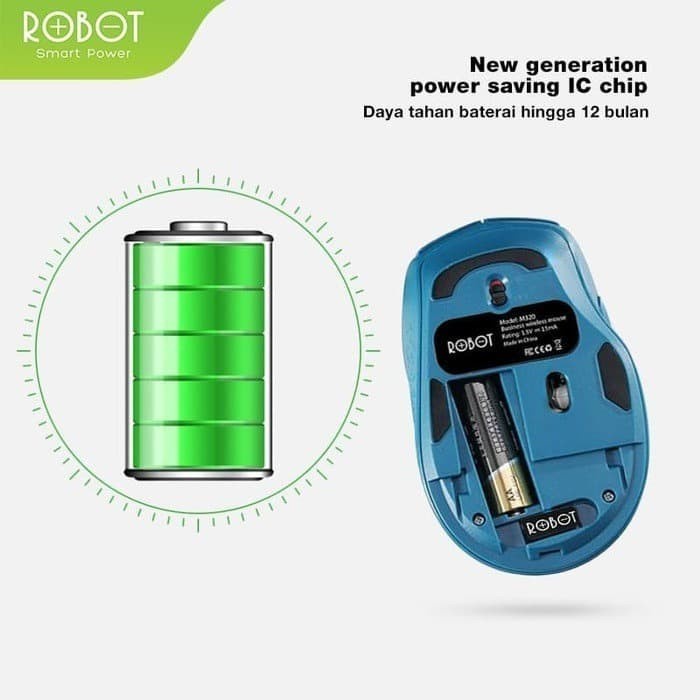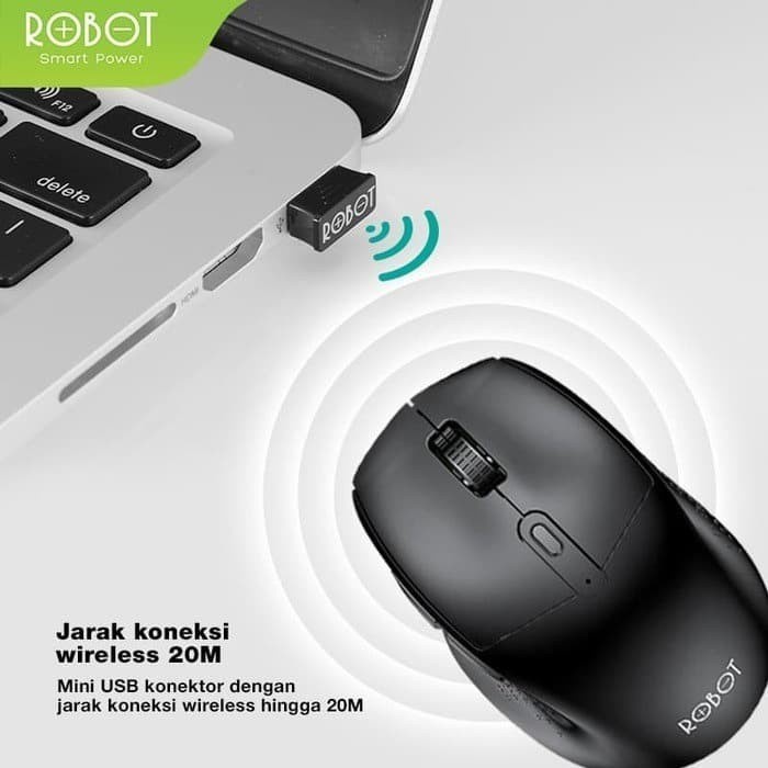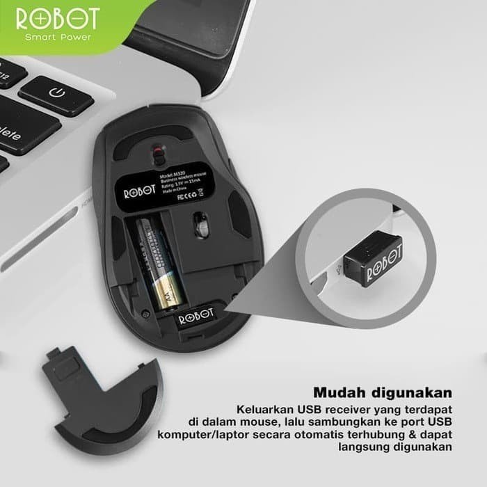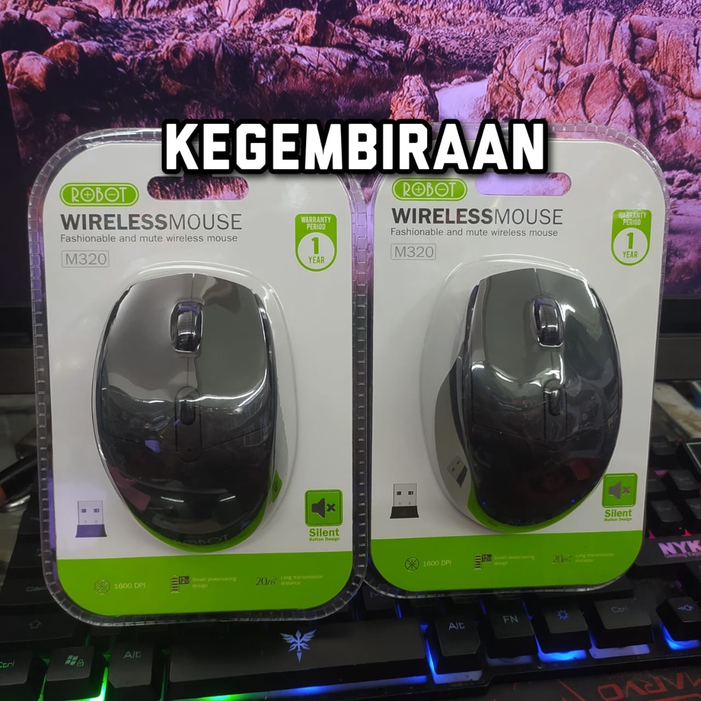 Mouse Wireless Robot M320 6D Silent Key 1600 DPI Original - Hitam