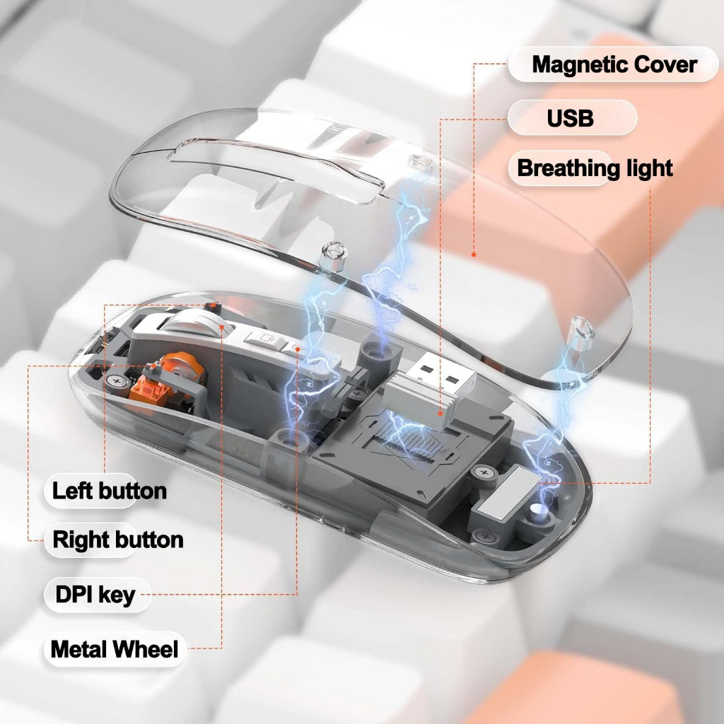 Mouse Wireless Transparan for Laptop / PC /Mouse Wireless Charger