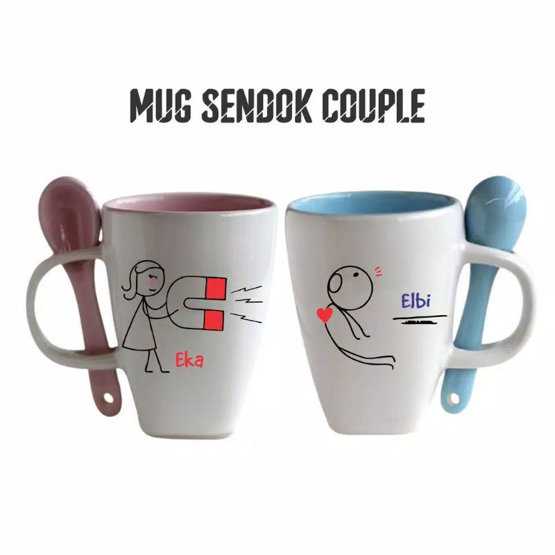Mug Couple Sendok // kado wedding anniversary dll // bisa desain sendiri