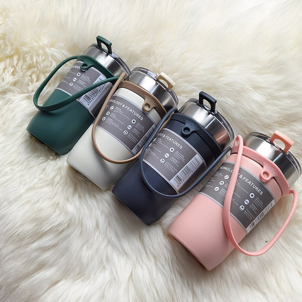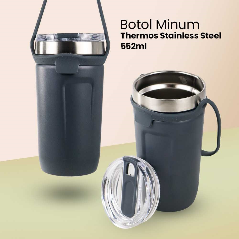 Mug Tumbler Botol Minum Termos Untuk Kopi Susu Teh Stainless Steel 550ml Tahan Panas Dingin / Portable Insulated Vacuum Thermos Tumblr Minuman Coffee Milk Tea Cup Stenlis Anti Slip Desain Cute Unik Minimalis Murah