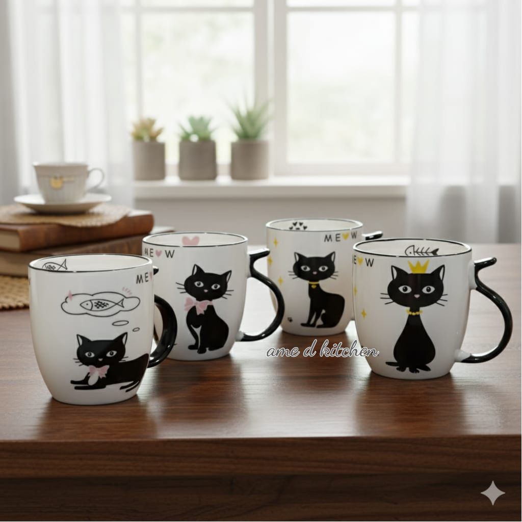 Mug bijian keramik kucing catty meow black and white